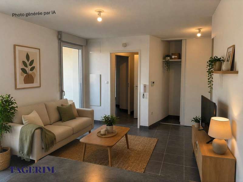 Apt T2 de 43.54m² au 2ème et dernier étage, cuisine équipée, salle de bain aménagée, chambre + placard, terrasse de 7.08m², couverte et sans vis à vis, au calme.