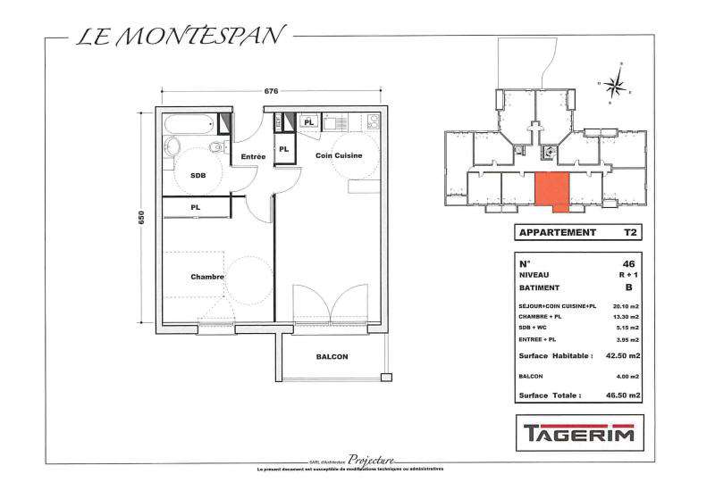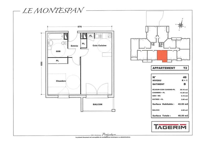 Appartement de Type 2 de 42.50m², balcon de 4.00 m², cet appartement offre volumes généreux, confort et qualité.