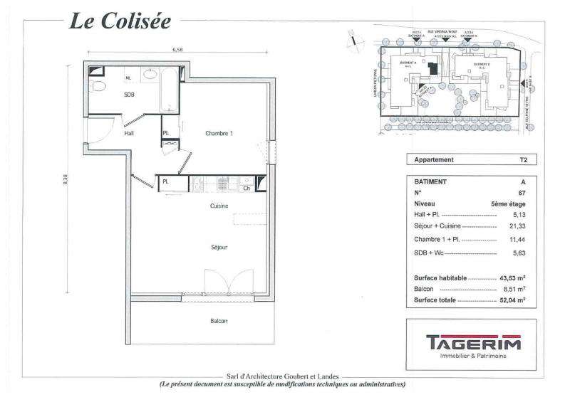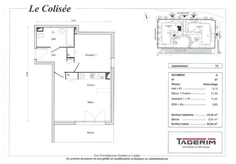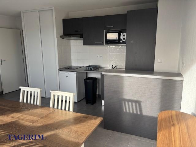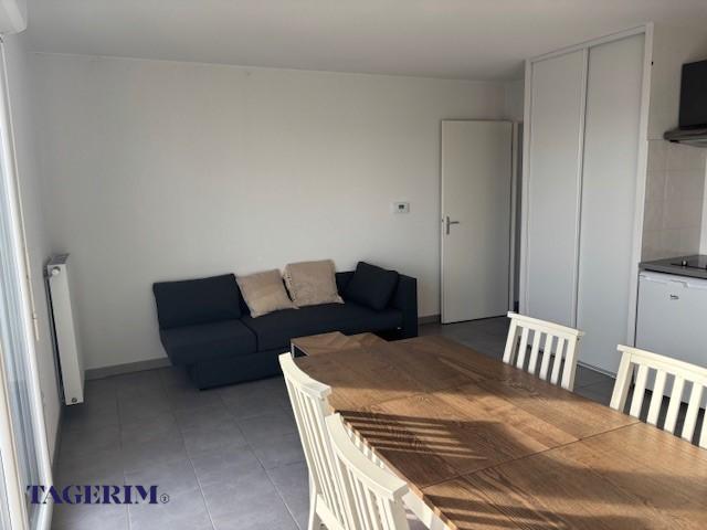 Apt T2 MEUBLE de 43.53 m² au 5e et dernier étage. Belles prestations, meubles neufs, cuisine équipée plaques vitrocéramiques 2 feux, hotte, frigo, micro-ondes, tables, chaises, vaisselle, 1 séjour très lumineux avec canapé et meuble de rangement, salle de bains avec WC, baignoire, lave linge, 1 chambre avec placard et lit 2 places avec matelas et linge de lit. Balcon de 8.51 m² sans vis à vis.