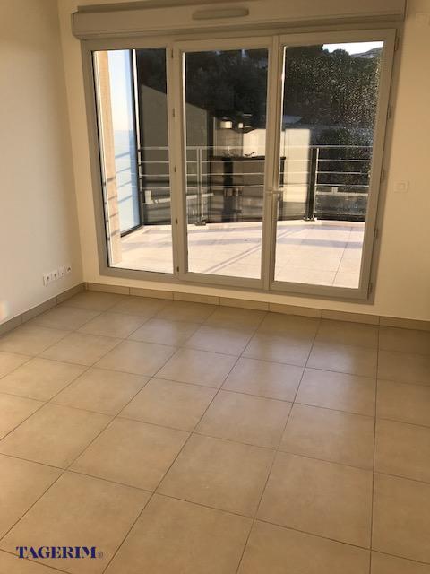 Mer - Terrasse de 11.91 m² - Cuisine équipée, placards aménagés, salle de bain aménagée, 1 chambre, carrelage dans toutes les pièces, parquet flottant dans la chambre. 1 Place de parking privative.