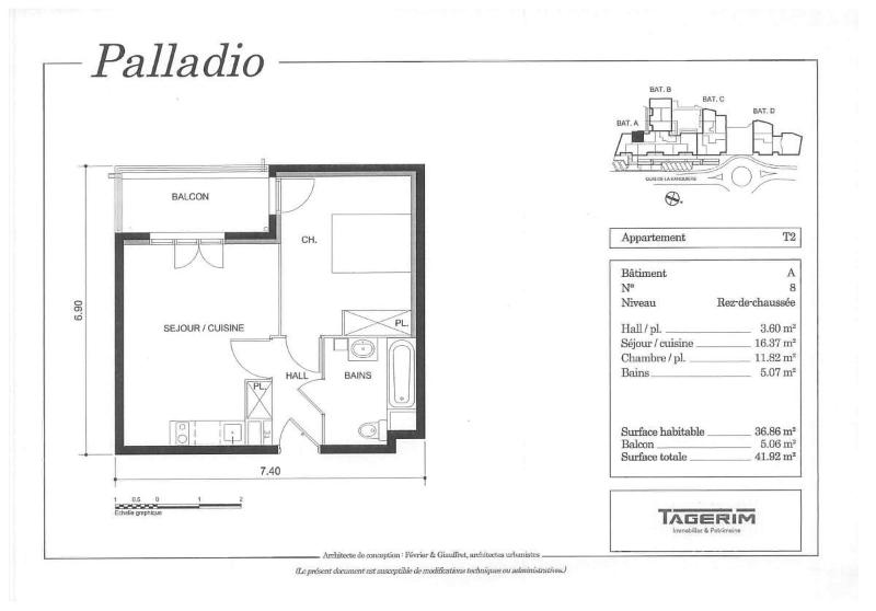 BBC "PALLADIO" située à SAINT ANDRE DE LA ROCHE (06730) -23 Quai de la Banquière. Proche de toutes commodités, Résidence sécurisée avec espaces verts,