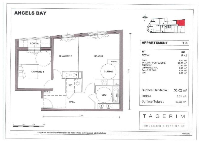 T3 (22) Surface habitable 58.02m² dans belle résidence située 8 impasse Juan, au calme, proximité tous commerces, plages, arrêt de bus "1",