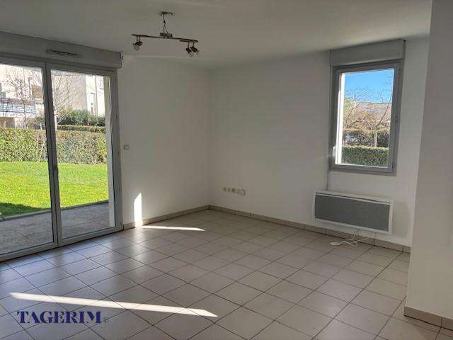 salle de bain , 2 chambres avec placard aménagé, terrasse de 9.32m² + jardin 170m², 2 parkings privatifs, 1 en sous sol et 1 autre extérieur. Disponible.