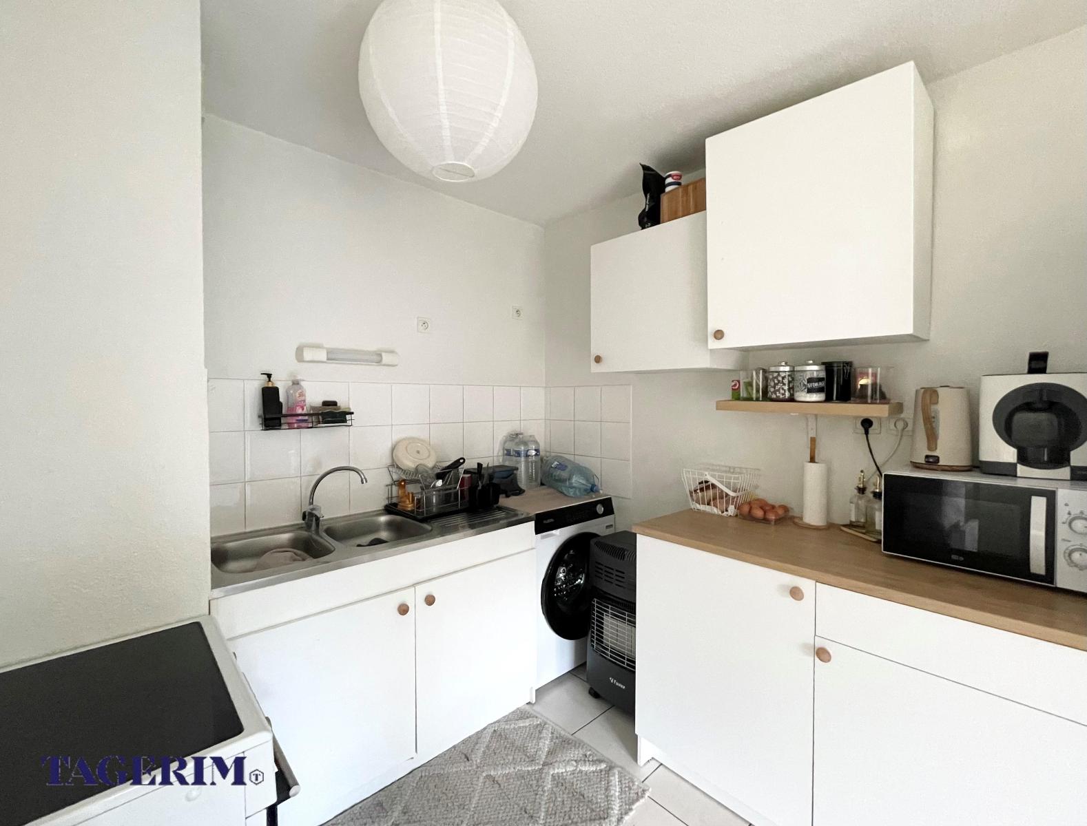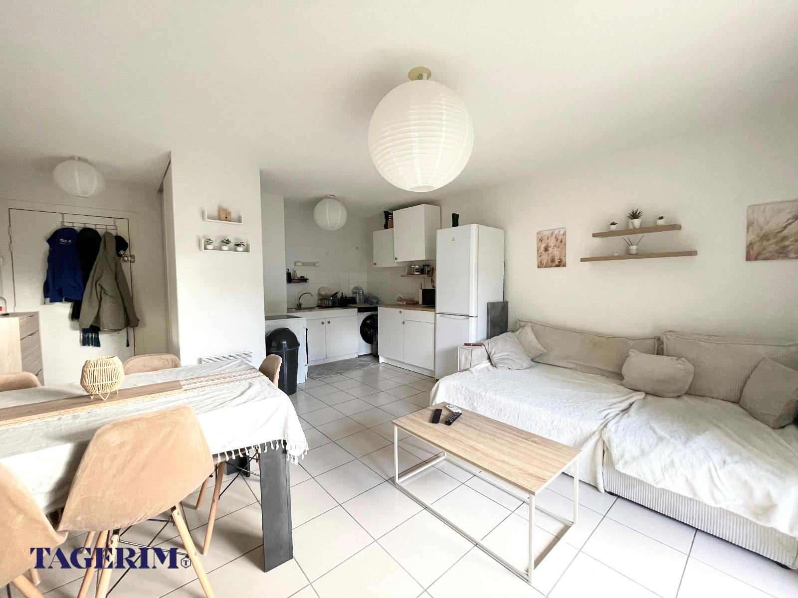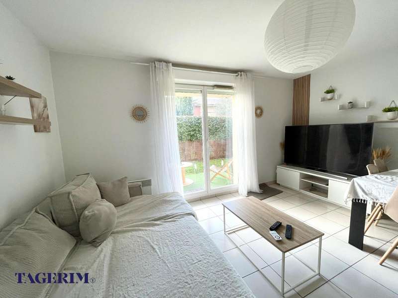 de 21 m2, vendu LOUE à une locataire sérieuse. Belle pièce de vie LUMINEUSE de 25 m2 env. ouverte sur le jardin, composée d'une entrée avec placard, d'un meuble sous évier et d'un séjour. Dégagement avec placard, Chambre avec placard. Salle de bain, WC séparé . Le bien est vendu avec 2 places de parking extérieur. Petite copropriété de 30 lots bien entretenue et sécurisée . DPE en cours.