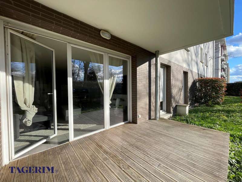 TOULOUSE 31200-LALANDE-CROIX BENITE: Bel appartement T3 de 66m2 avec un grand Jardin de 67 m2 exposé Ouest et une terrasse de 9 m2 sans vis-à-vis. Entrée avec placard, Pièce de vie de 30m2 composée d'un séjour avec cuisine ouverte aménagée. 2 chambres de 12m2 et 9,5 m2 avec placard, Grande salle de bain avec meuble double vasque et emplacement pour la machine à laver le linge. WC fermé. Chauffage au gaz. Bien vendu avec une place de parking en sous-sol. Commerces, groupe scolaire et crèche