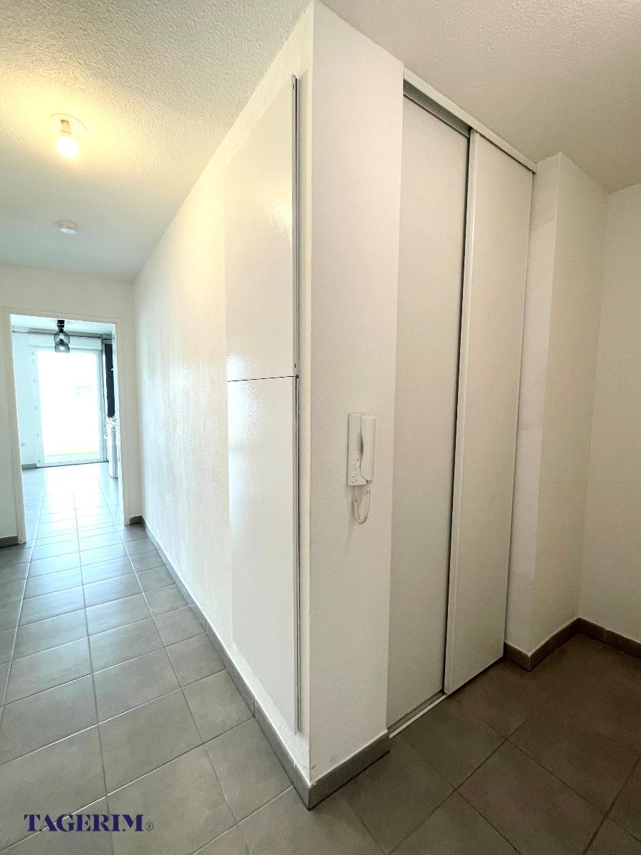 lumineux de 46m2 DERNIER ETAGE avec balcon de 9m2. Hall d'entrée avec placard, Pièce de vie de 20 m2 composée d'une cuisine ouverte aménagée et d'un séjour donnant sur le balcon. Chambre de 12m2 env. avec placard, Salle de bain avec emplacement pour la machine a laver le linge , WC indépendant. Résidence récente de 2016 avec ascenseur. Appartement en bon état. Proximité appréciable des commerces et des écoles. Lignes de bus 60 et 26