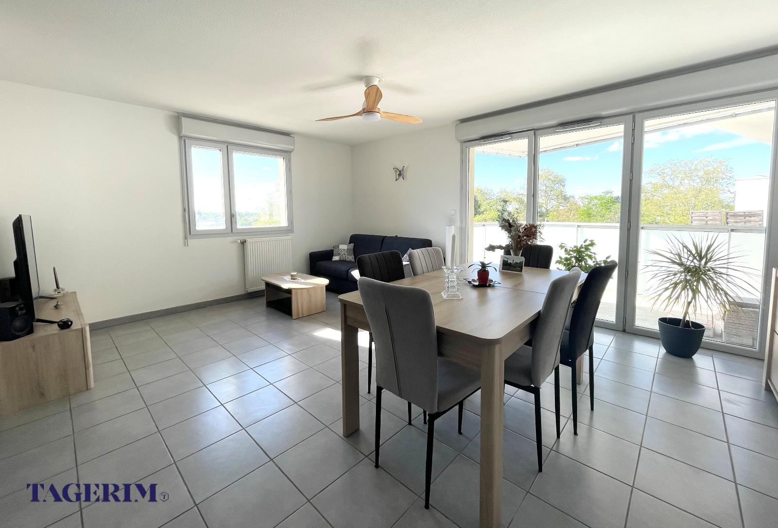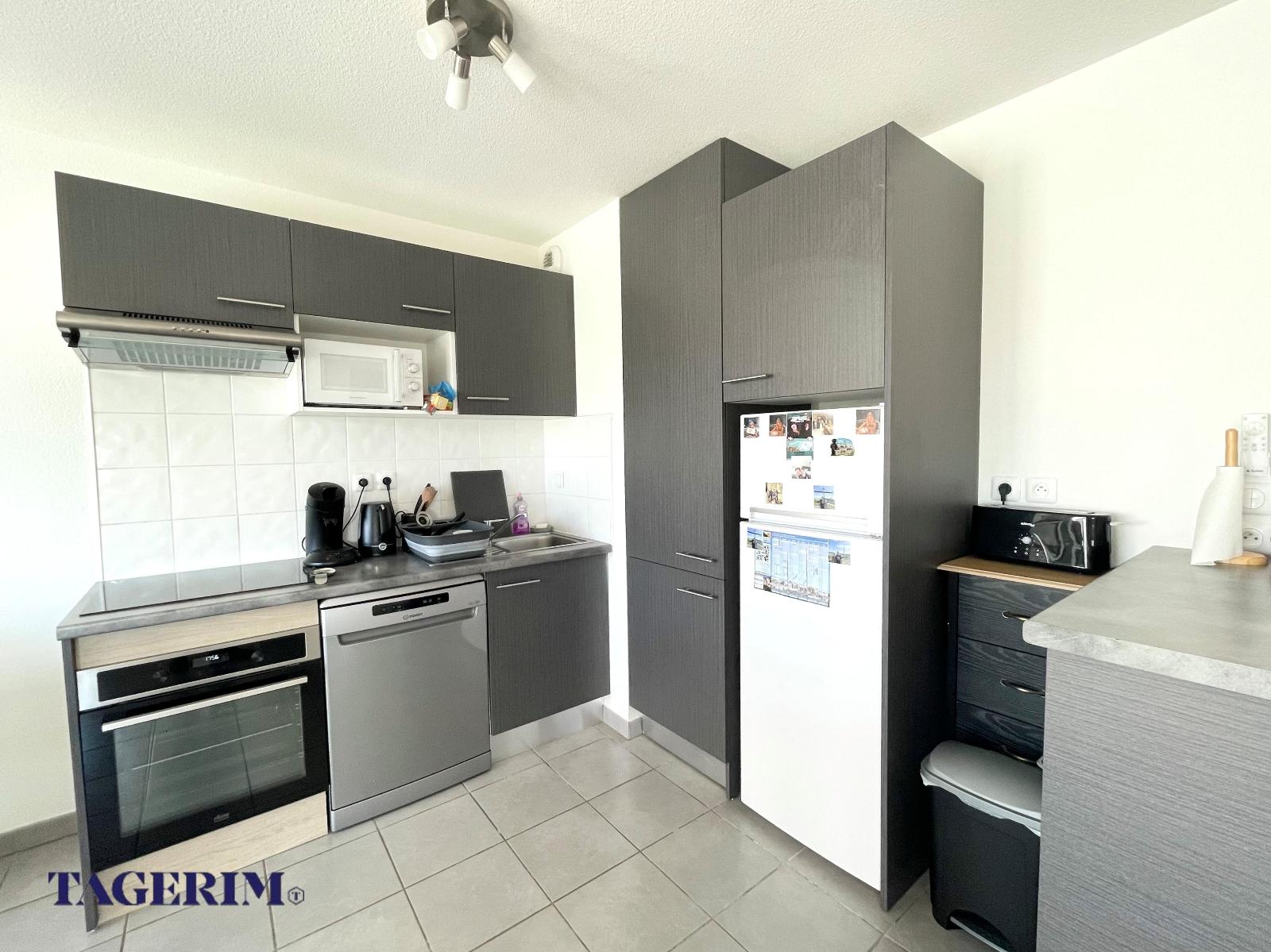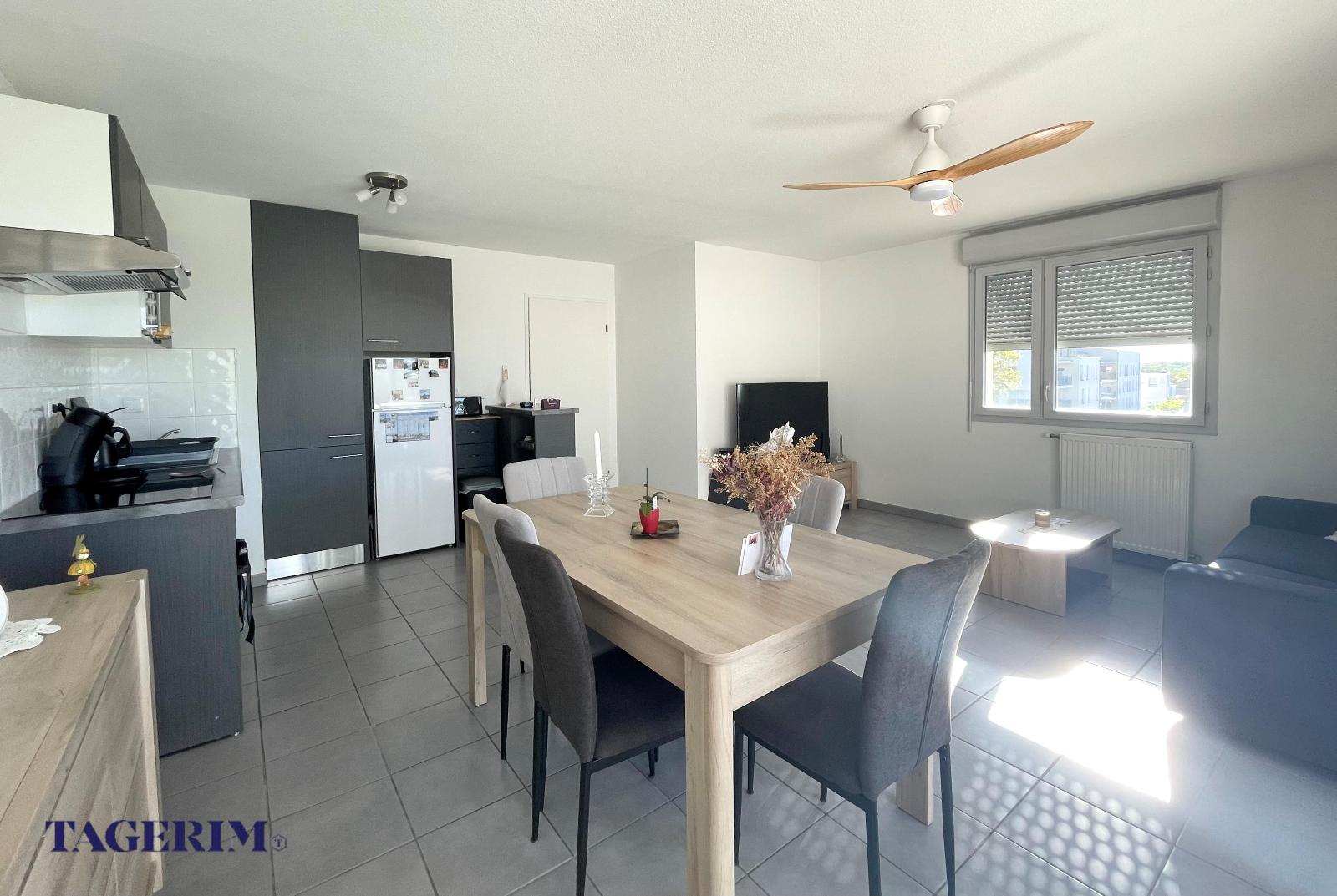 TOULOUSE LALANDE -A proximité de toutes les commodités, des commerces, des bus et de l'accès rocade, Appartement T3 LUMINEUX de 66 m2, au 4ème étage sur 5, en parfait état avec Ascenseur et grand Balcon de 10m2. Entrée avec placard, pièce de vie de 28m2 env. donnant sur le balcon, composée d'un Séjour et d'une Cuisine américaine EQUIPEE . 2 chambres avec placard dont une de 12,5 m2, grande salle de bain