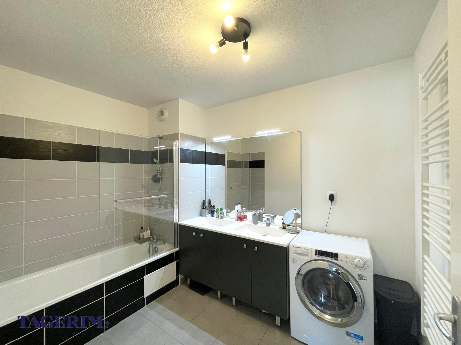 de 6,5 m2 avec meuble double vasque, WC indépendant. Bien vendu avec une place de parking en sous-sol.